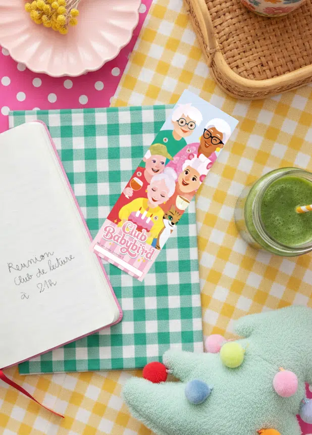 Pour célébrer les 3 ans du club de lecture, j’ai voulu créer un objet qui nous ressemble avec le fruit de nos échanges. Les couleurs, les symboles et l’ambiance ont été imaginés en co-création avec les membres du club, puis peints à la main à la gouache.